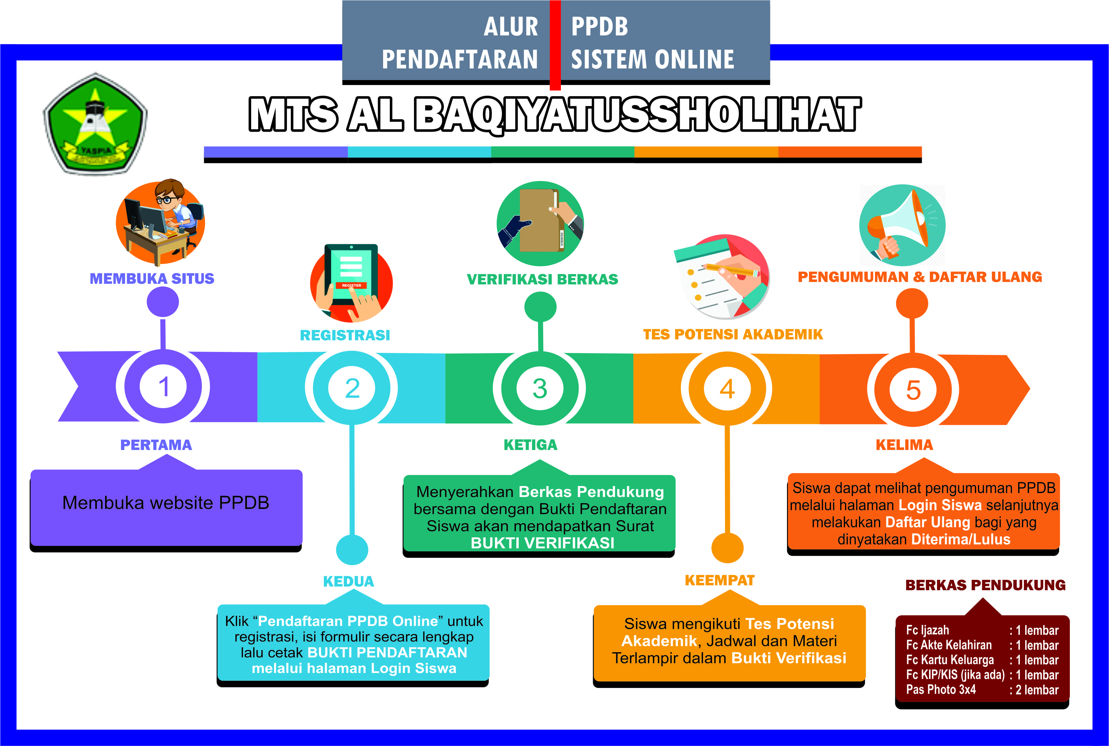 SMP ISLAM YASPIA menyediakan PPDB secara online diharapkan proses PPDB dapat berjalan cepat dan bisa dilakukan dimanapun dan kapanpun selama sesi PPDB Online dibuka. Proses pendaftaran calon siswa baru tidak menggunakan formulir konvensional hanya dengan mengakses website PPDB Online SMP ISLAM YASPIA.